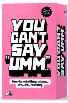 This is a noisy party game with one super, simple  mission – you can’t say “umm”.
